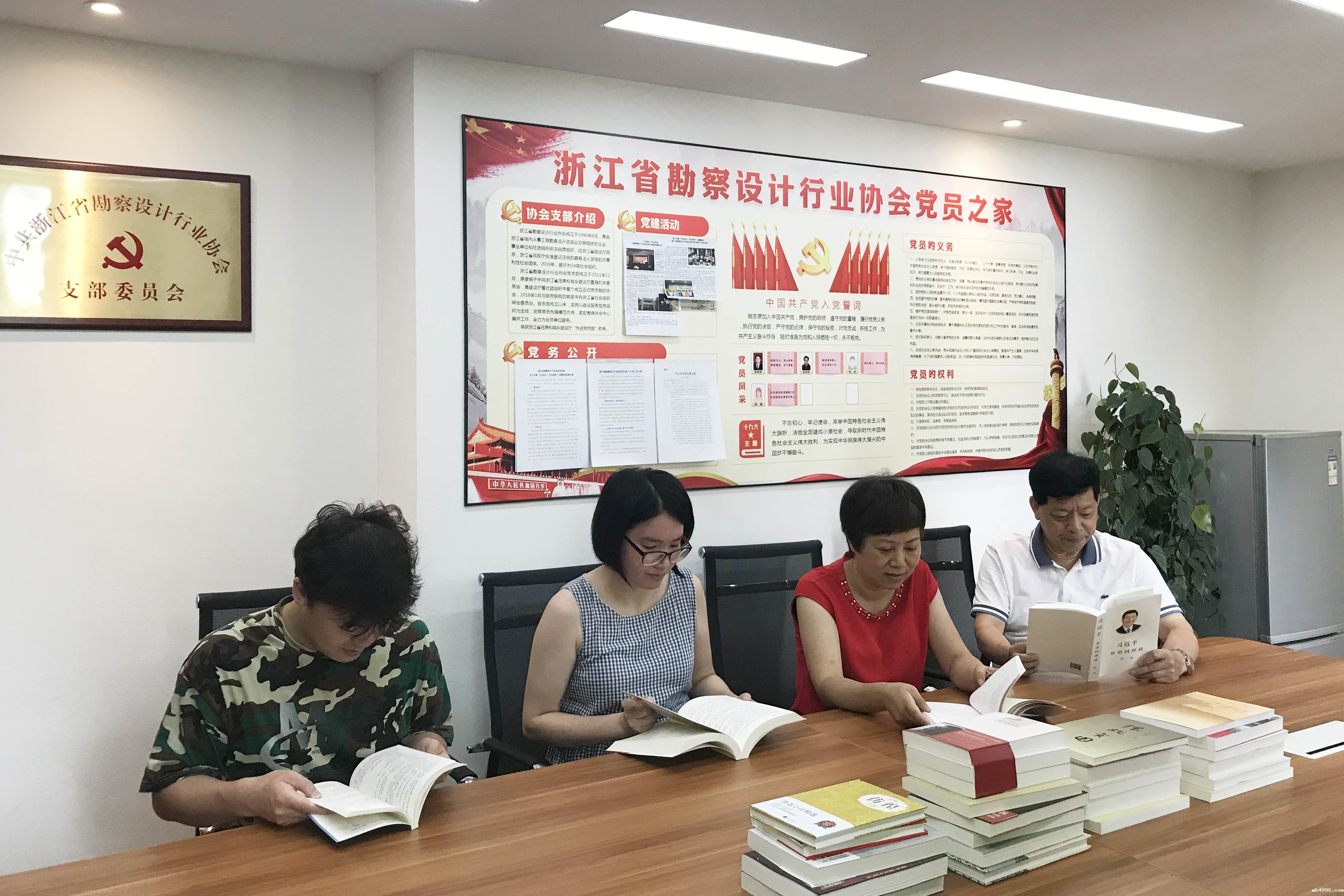省社会组织综合党委给所属各党支部发放一套学习书籍,《习近平谈治国理政》、《之江新语》、《习近平的七年知青岁月》、《干在实处,走在前列》、《习近平讲故事》等近三十册。协会党支部组织开展读书活动并且建立了借阅制度,下班后可以借回家认真阅读。党支部要求大家撰写读书笔记,适时组织学习交流活动。