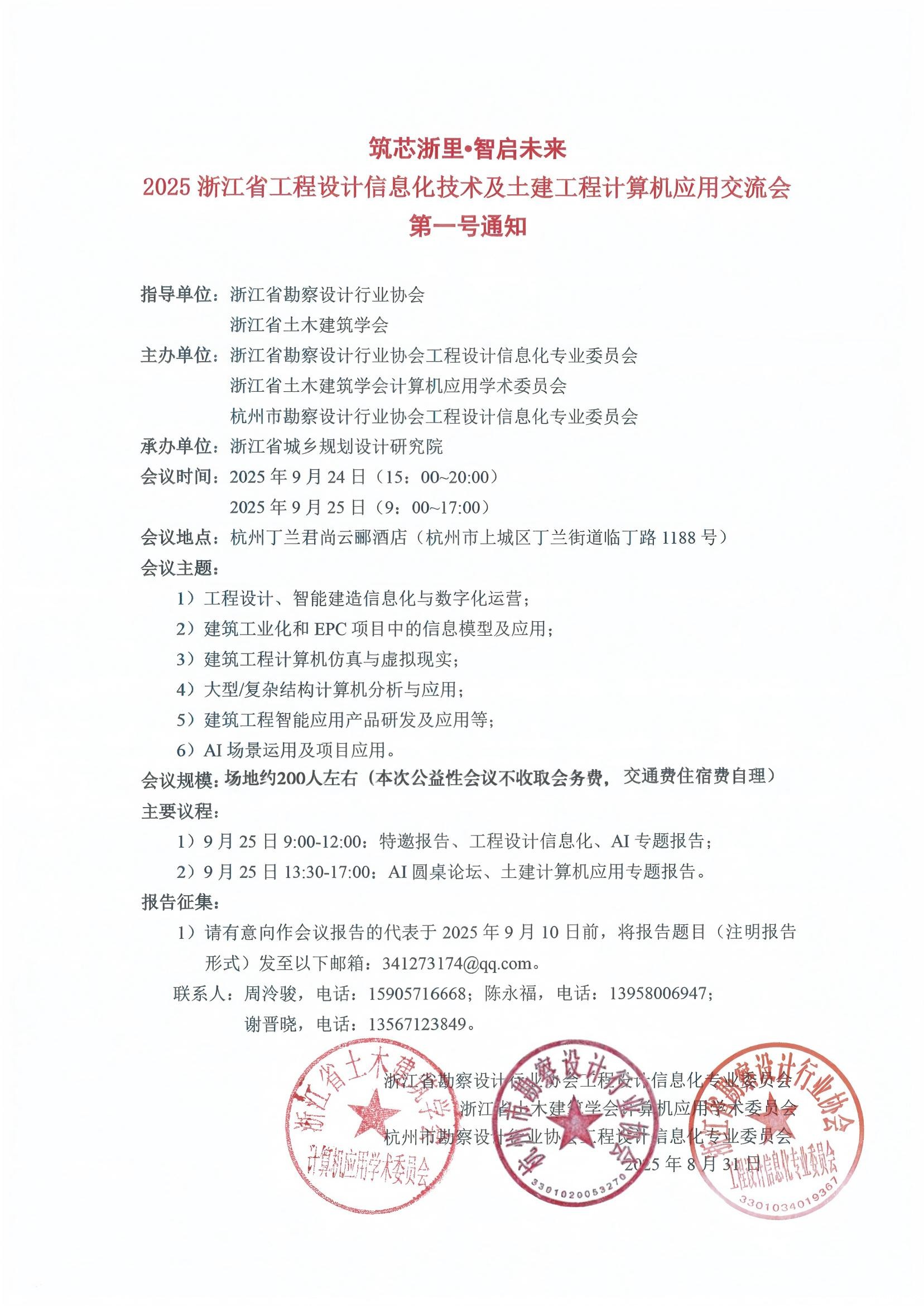 2025浙江省工程设计信息化技术及土建工程计算机应用交流会第一号通知